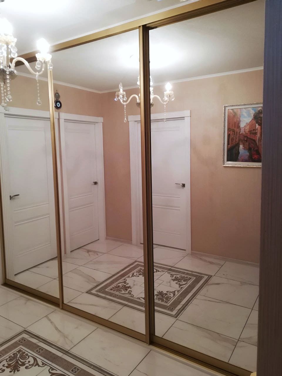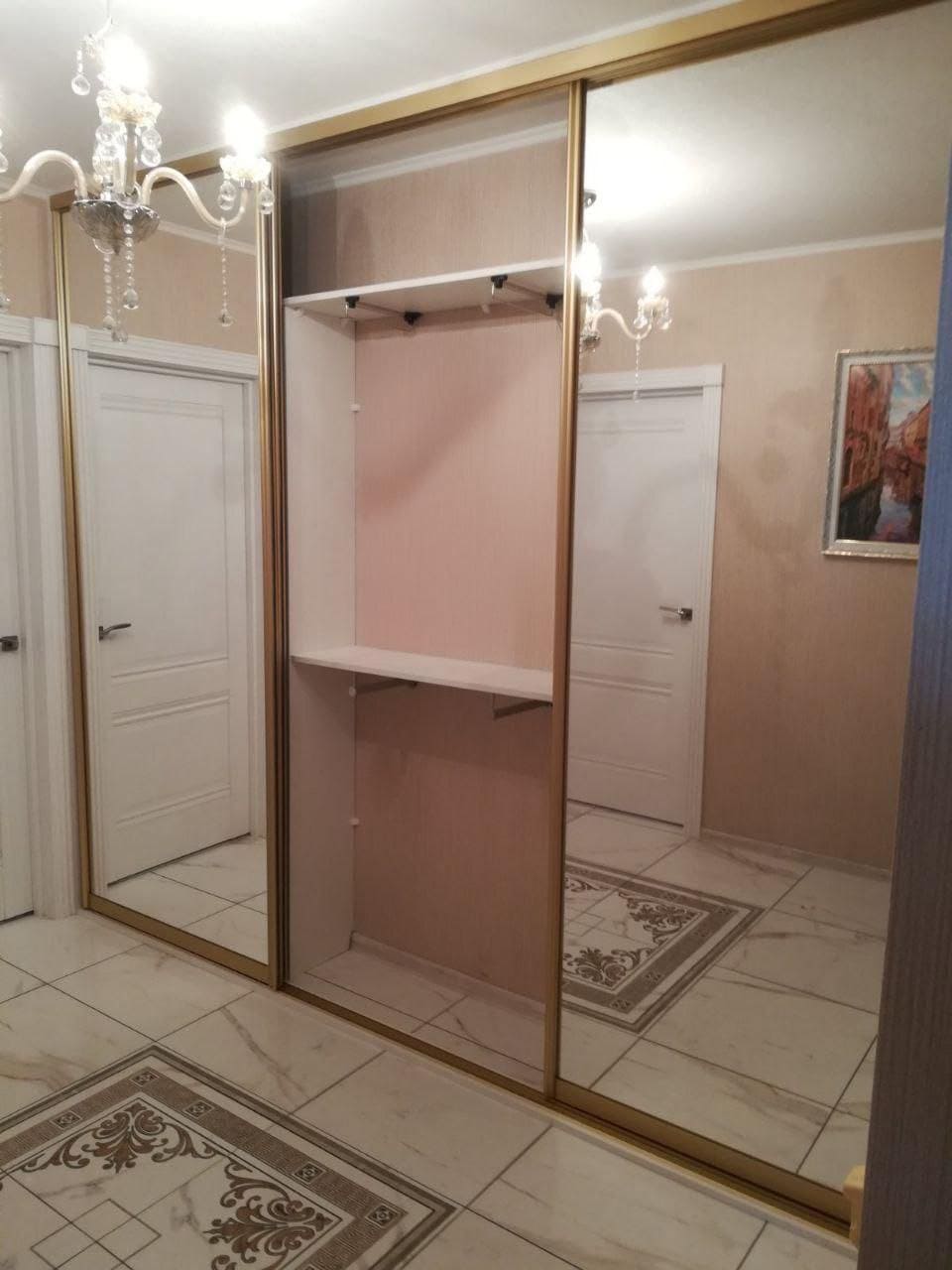 Шкаф-купе с зеркальным дверями и встроенным комодом слева, К-004