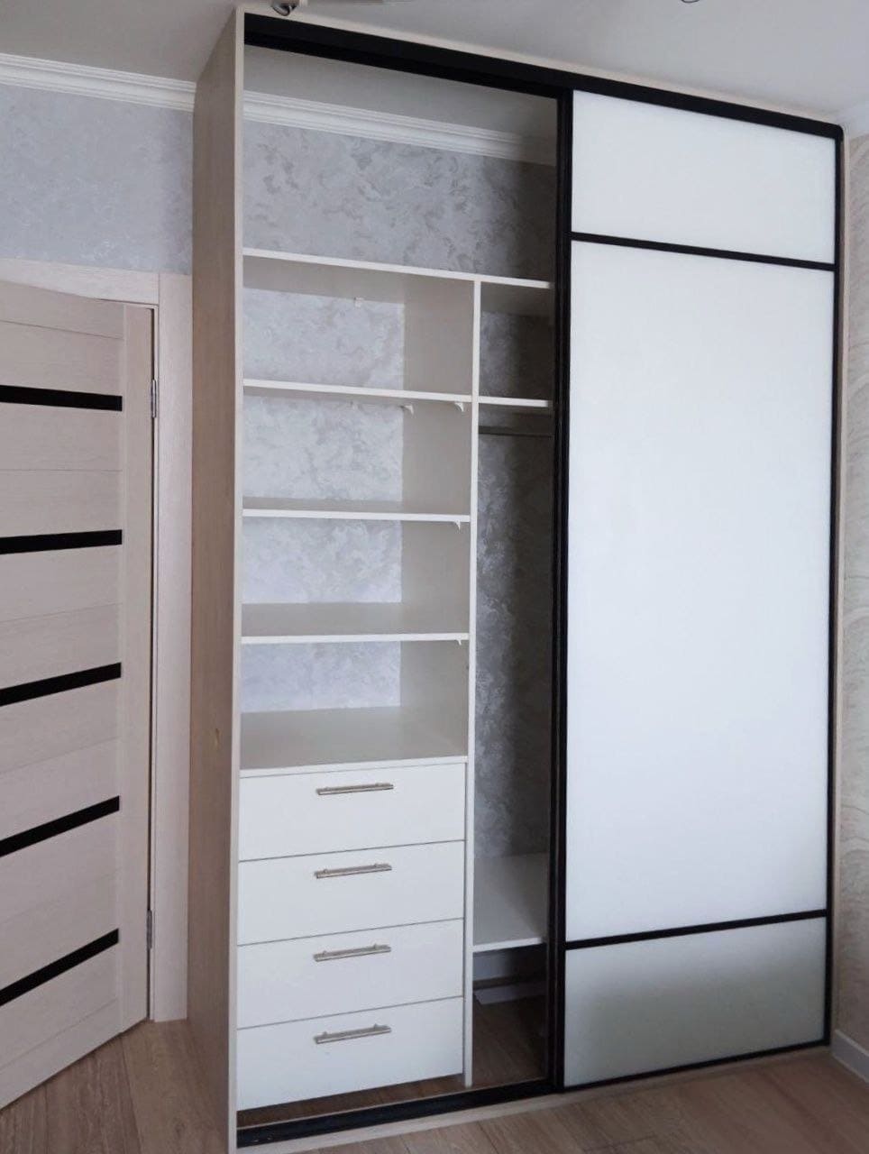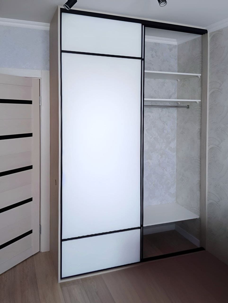 Шкаф-купе с фасадами из ЛДСП Кроношпан белый бриллиант, К-012
